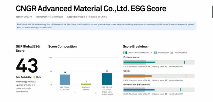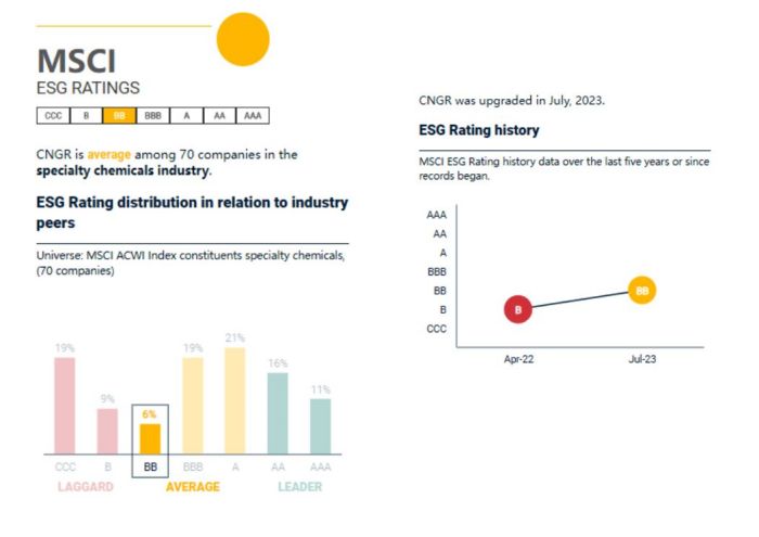 在2023年的標普CSA評分中,中偉股份得分38分,與去年相比提升了10分。值得一提的是,這一分數(shù)已達到入選“標普中國可持續(xù)發(fā)展年鑒”門檻,代表中國可持續(xù)發(fā)展標桿示范企業(yè)水平。與此同時,中偉股份在明晟的ESG評級也由2022年的B等級提升到了2023年的BB等級,這一評級結果與相關上下游企業(yè)相比,已處于中間水平。在富時羅素的ESG評分中,中偉股份也取得了2.6分的好成績,這一分數(shù)已顯著高于行業(yè)平均水平。