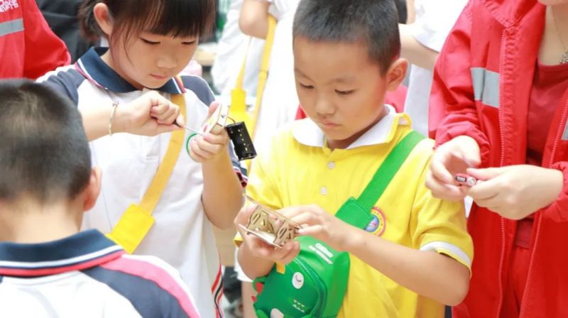 小朋友們時(shí)而認(rèn)真聽(tīng)著講解,展現(xiàn)著自己的好奇和對(duì)知識(shí)的渴望;時(shí)而舉手提問(wèn),尤其是提到日常生活中與新能源息息相關(guān)的科技產(chǎn)品時(shí),一下子問(wèn)題就多起來(lái),“三元前驅(qū)體是哪三元?我的手表里面電池都有哪有材料?新能源汽車(chē)?yán)锩娴碾姵睾褪謾C(jī)的電池有什么區(qū)別……”