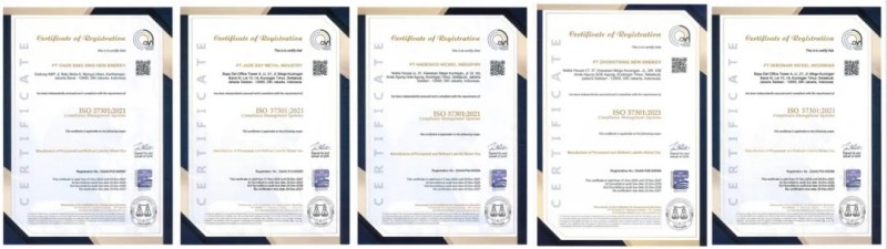 2024年10月,中偉印尼大區(qū)與國際專業(yè)評級(jí)機(jī)構(gòu)DAAS展開評審工作,針對中偉股份印尼大區(qū)中青新能源有限公司、印尼中偉鼎興新能源有限公司、印尼德邦鎳業(yè)有限公司、翡翠灣金屬工業(yè)有限公司、納德思科里克工業(yè)有限公司五個(gè)主要生產(chǎn)主體同步開啟認(rèn)證工作,并于近日完成全部認(rèn)證。