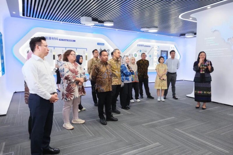 在中偉科技館和全球研發(fā)中心參觀通道,Tri Winarno局長一行對中偉的一體化產(chǎn)業(yè)以及研發(fā)體系表示出濃厚興趣。劉一介紹道,中偉股份已建立起“資源開發(fā)-材料智造-循環(huán)回收”的新能源材料產(chǎn)業(yè)生態(tài),結(jié)合行業(yè)領(lǐng)先的生產(chǎn)工藝,充分發(fā)揮資源的利用價(jià)值,助力產(chǎn)業(yè)可持續(xù)發(fā)展;同時(shí),中偉研發(fā)投入逐年提升,國際化產(chǎn)學(xué)研用體系不斷完善,通過行業(yè)超大規(guī)模研發(fā)車間推動(dòng)前端研發(fā)成果轉(zhuǎn)化落地,以科技創(chuàng)新驅(qū)動(dòng)公司高質(zhì)量發(fā)展。
