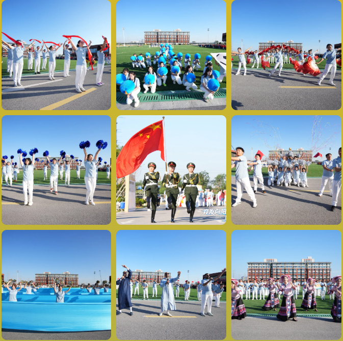 晨曦初照,開(kāi)幕式現(xiàn)場(chǎng)人聲鼎沸,熱鬧非凡,8支參賽隊(duì)伍邁著整齊的步伐,跟隨國(guó)旗、司旗、運(yùn)動(dòng)會(huì)會(huì)旗入場(chǎng),帶來(lái)各具特色的精彩表演。彩帶飄揚(yáng)、花團(tuán)簇簇,啦啦操與大合唱、彩扇舞與錦緞陣,形式各樣的開(kāi)幕式表演將民族的、也將世界的文化凝結(jié)匯聚,展現(xiàn)出全球中偉人拼搏向上、自立自強(qiáng)的精神面貌,詮釋了“責(zé)任創(chuàng)新多元共贏”的精神內(nèi)核。