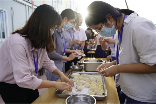 自南部產(chǎn)業(yè)基地動工以來,參建單位全員加班加點,每日堅守施工現(xiàn)場。為感謝他們?yōu)榛亟ㄔO(shè)做出的貢獻,一場“中秋&國慶雙節(jié)茶話會”于當日舉行,為他們送去了來自中偉的關(guān)懷。