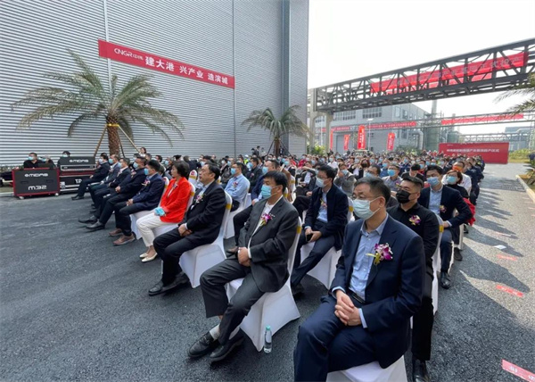 背靠一座座嶄新落成的車間,投產(chǎn)儀式現(xiàn)場(chǎng)莊嚴(yán)而喜慶。儀式開(kāi)始,現(xiàn)場(chǎng)領(lǐng)導(dǎo)嘉賓跟隨南部產(chǎn)業(yè)基地紀(jì)錄片的鏡頭畫面,一起回顧了基地建設(shè)的全景,見(jiàn)證這一偉大的“中偉速度”、“欽州速度”。
